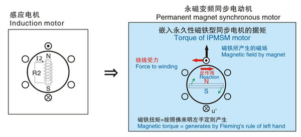 其構造為內(nèi)嵌永久性磁鐵,無二次繞線,所以可將其損失控制在較低水平。