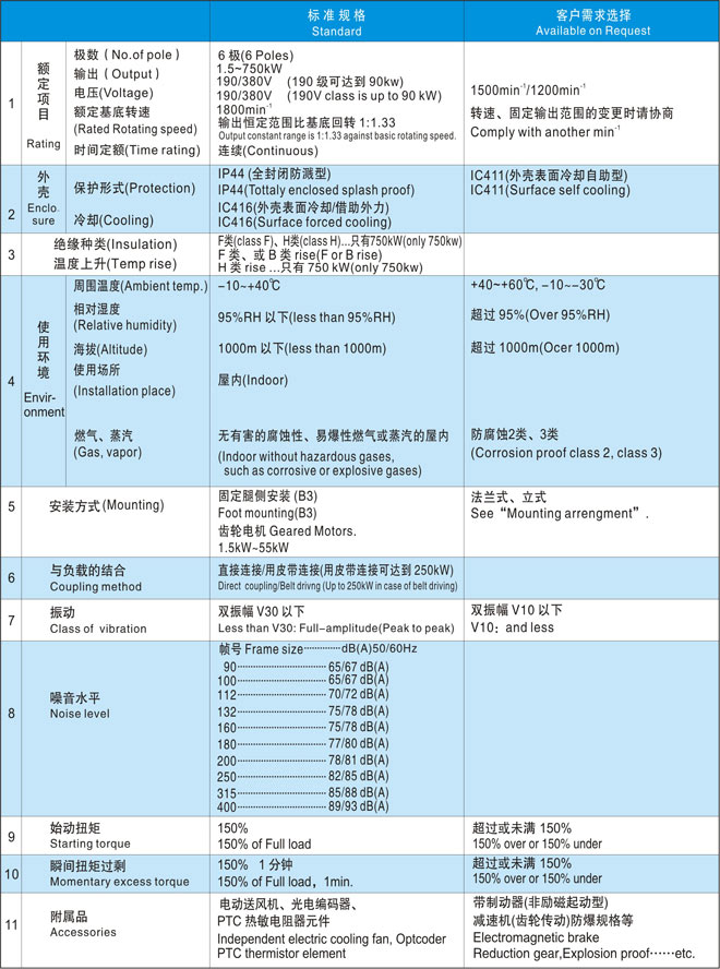 慣性力矩小,具有優(yōu)越的加減速特性。(與本公司YVF2系列變頻器專用IM相比降低30-75%)。